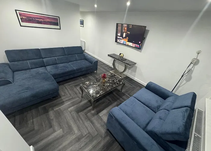 The 1-bedroom Modern 3 Bedroom Holiday Home -Jaquzzi Bath -Private Parking-Suitable For Contractors - Free Wifi Leeds is located 4.1 km from the Leeds City Museum and provides a hot tub. This holiday home includes complimentary private parking and a terrace with views of the garden.